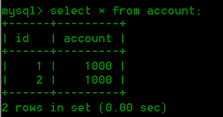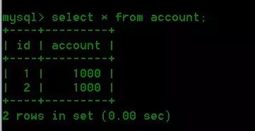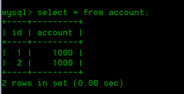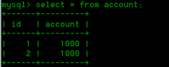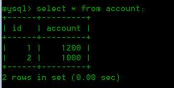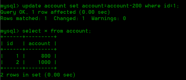 我们将 id=1 的用户 account 减 200。然后查询,发现 id=1 的用户 account 变为 800。