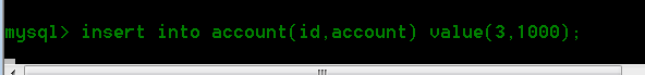 我们在 A 用户所在会话中为表 account 添加一条数据: