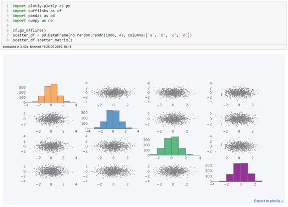 注意,上图唯一改变的是 Cufflinks cf.go_offline() 的导入和设置,它将 .plot() 方法变为 .iplot()。