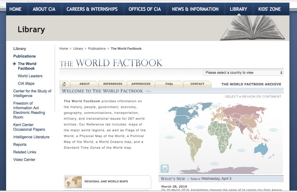你可以选择要查看的国家,然后点击你喜欢的任何主题(如经济或交通)。该网站是可检索的。它还有一个关于世界领导人和一个关于 CIA Maps 的专栏。