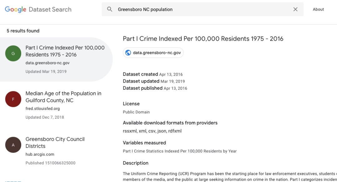 它可以让你搜索到已经根据 schema.org 标准进行正确标记的可用数据集。虽然这可以被视为一站式数据集商店,包括像来自 NASA 和 ProPublica 等来源的数据,但对于一些特定目标来说,其它数据集可能更好用。