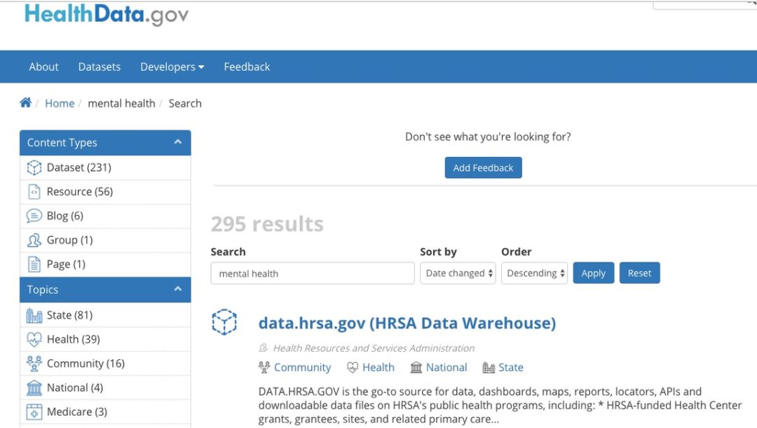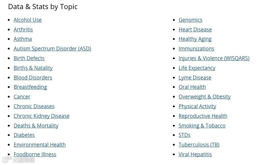 该网站包括各种健康主题,可让你访问大量可浏览和可搜索的数据。甚至可以通过各种与主题相关的网站创建自己过滤的数据集。