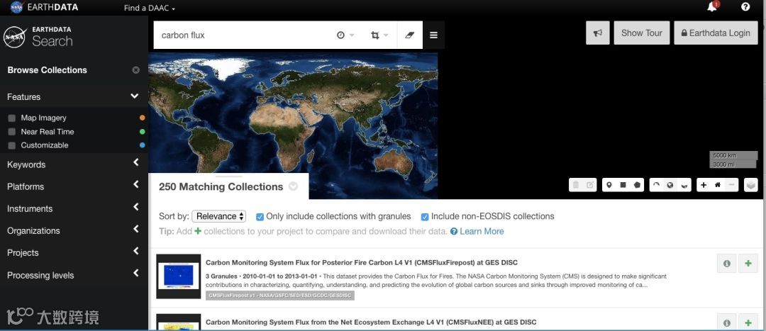 地球观测系统数据和信息系统包含了美国宇航局的地球观测数据,其中包含如 NC 地表温度和碳通量等信息。