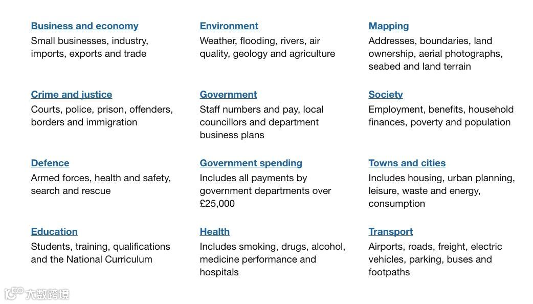 与美国的 Data.gov 类似,该网站允许访问各种主题的数据。这些数据由中央政府、地方当局和公共机构提供。