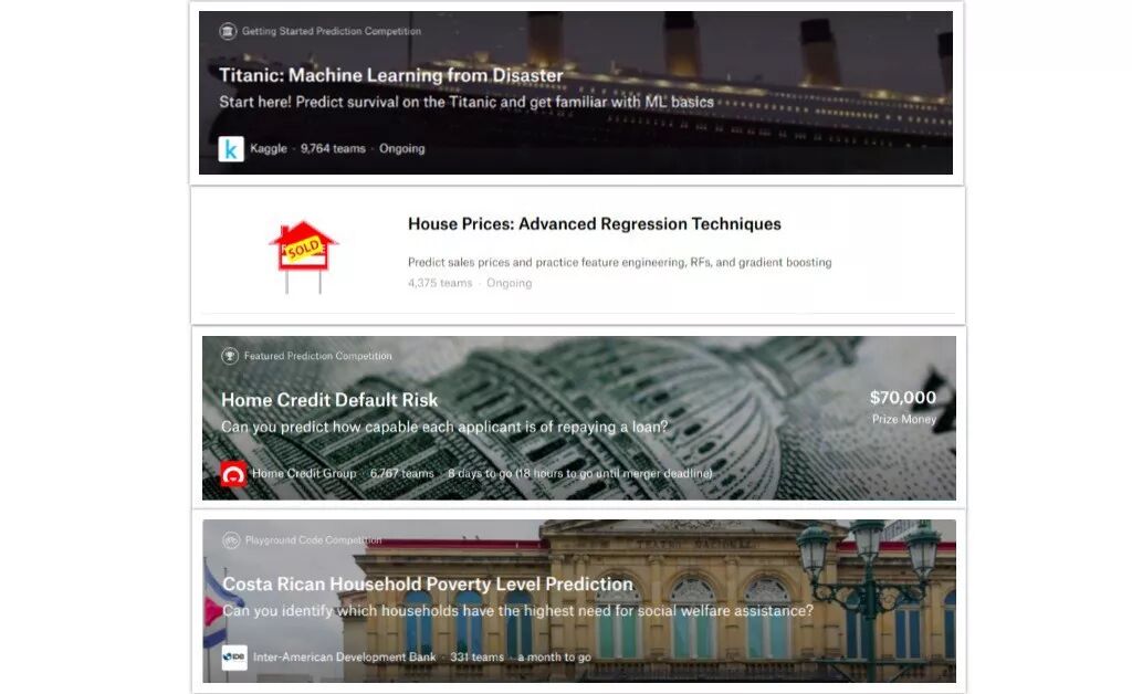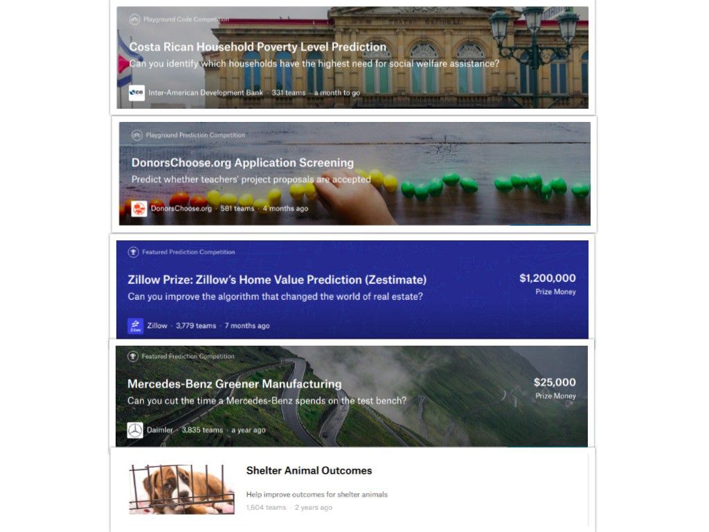 Kaggle上的挑战是由为解决现实问题的公司举办的。他们提供的数据集是真实的。所有奖金都是真实的。这意味着您可以通过解决实际问题来学习数据科学/机器学习并练习您的技能。