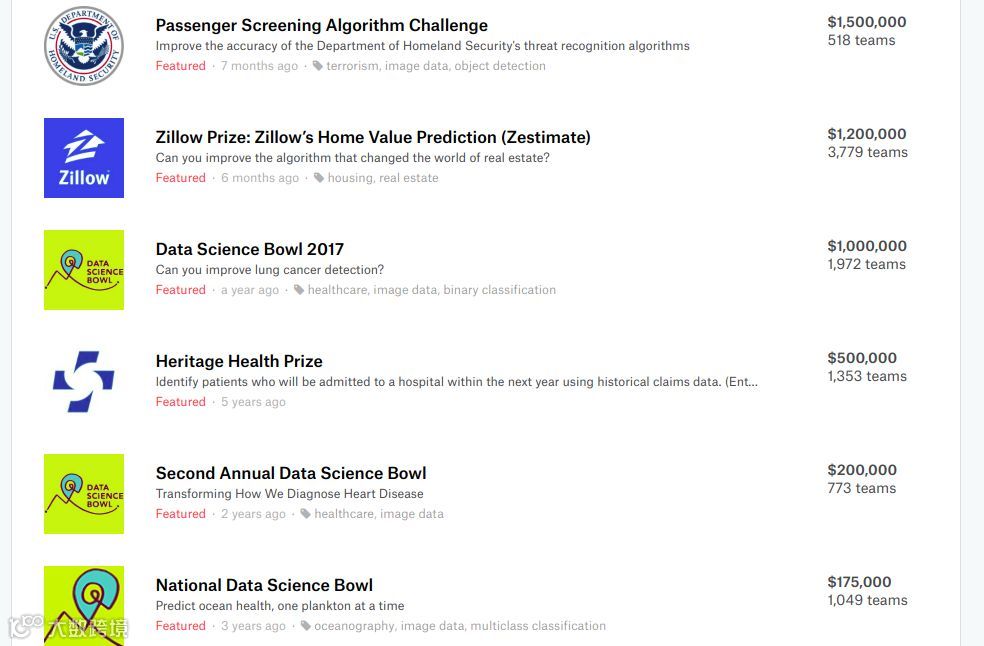 Kaggle举办的比赛获得最高奖金