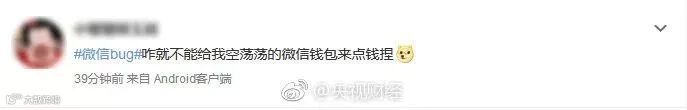 微信出现bug后,网友发话了,为什么微信bug不能给我空空的微信钱包来点钱呢