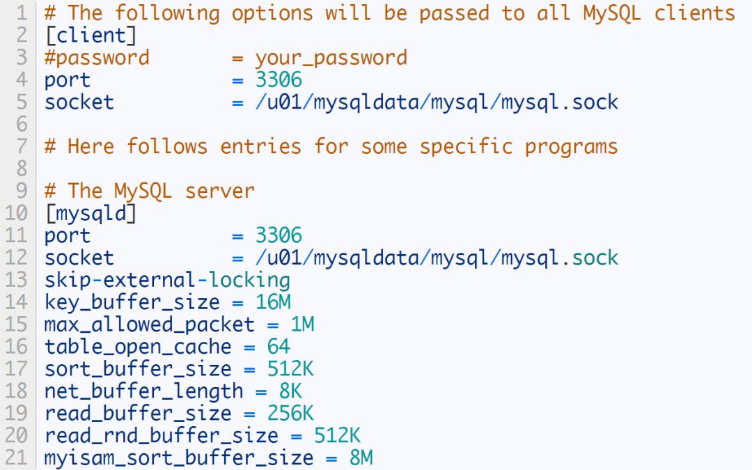 并不是所有版本都包含有my.cnf这个配置文件,在MySQL 5.5版本,我就找不到my.cnf这个配置文件, 而有些MySQL版本该文件位于/usr/my.cnf,如果/etc/目录下没有my.cnf配置文件,请到/usr/share/mysql/下找到*.cnf文件,拷贝其中一个到/etc/并改名为my.cnf中。命令如下: