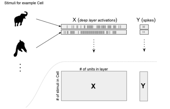 对于每一个图像(刺激),在实验室实验中,我们会记录单独的发射速率(峰值/秒)。我们的目标是找出是否可以使用来自CNN层的人造神经元来预测神经元对每个图像的实际生物反应(即回归问题)。我们该如何使用人工神经元?具体做法是,我们将给CNN提供同样的图像,并从每一层提取它们的特征。