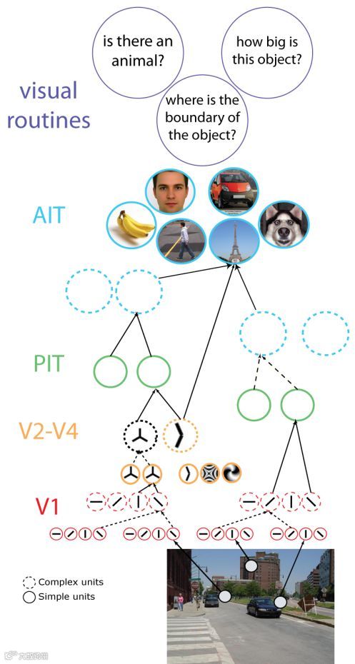 在日益复杂的过程中被消化,从简单的视觉表现如边缘、线条、曲线等开始,逐渐进行更复杂的表示,例如,面部或全身。这将使我们了解更多关于观察对象的信息。
