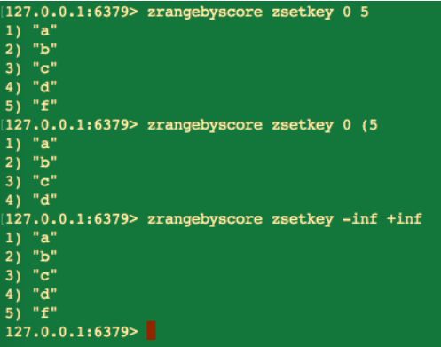 min 和 max 参数还支持开区间(小括号)和闭区间(中括号),同时我们还可以用 -inf 和 +inf 参数代表无限小和无限大。