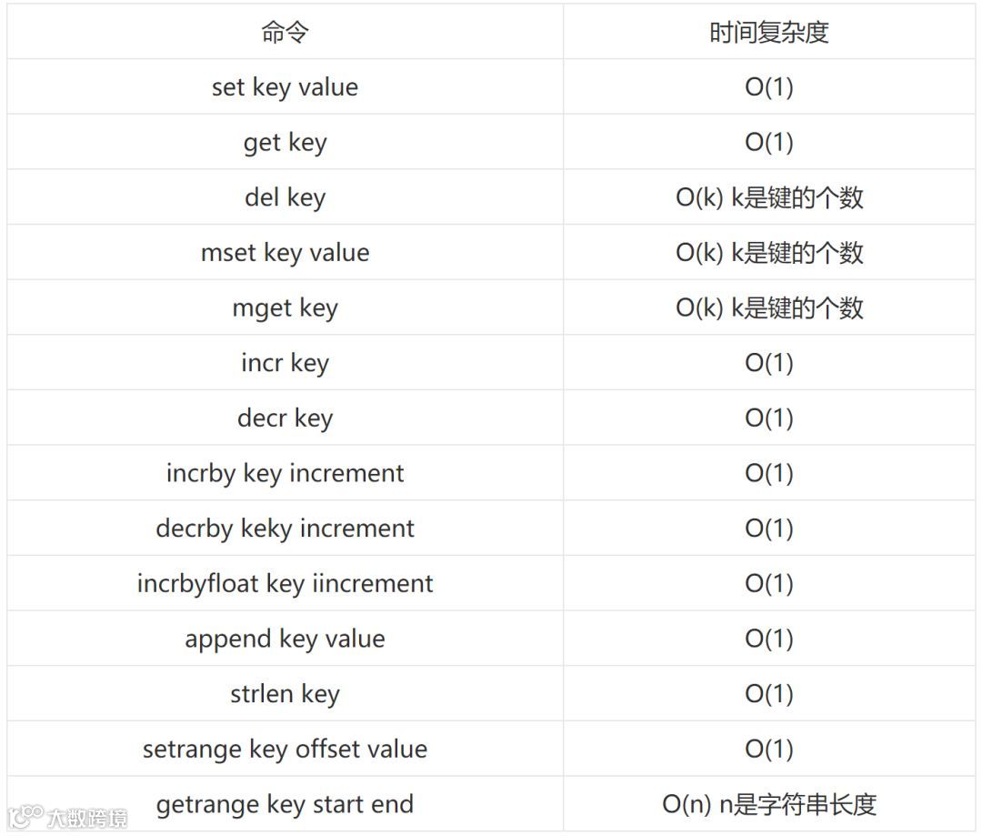 在 Redis 中执行任何命令时,都有相应的时间复杂度,复杂度越高也就越费时间,所以在执行 Redis 中的命令时,如果要执行的命令复杂度越高,就越要慎重。下面是字符串命令时间复杂度类型表: