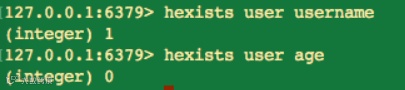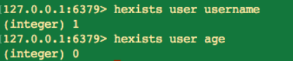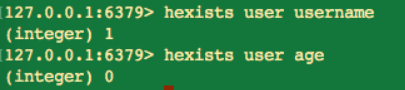 当执行 hexists 命令时,如果当前 key 包括 field,则返回 1,否则返回 0。