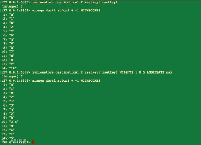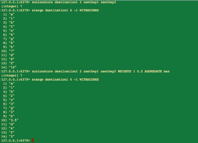 zunionstore 命令的相关参数和 zinterstore 命令相同。