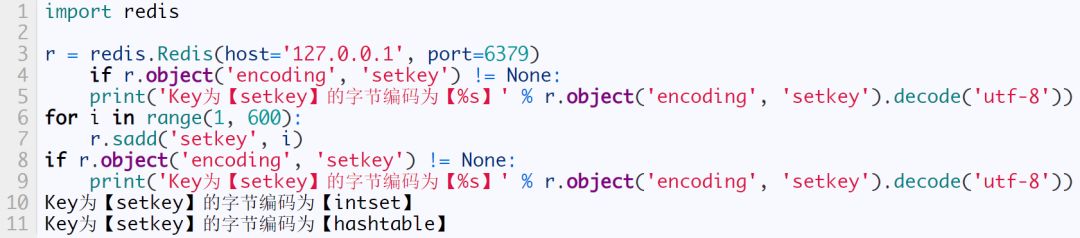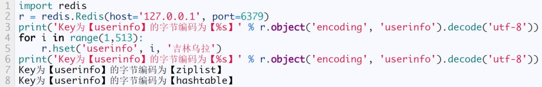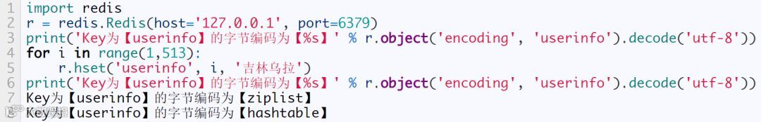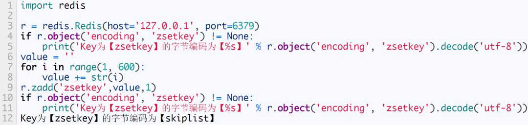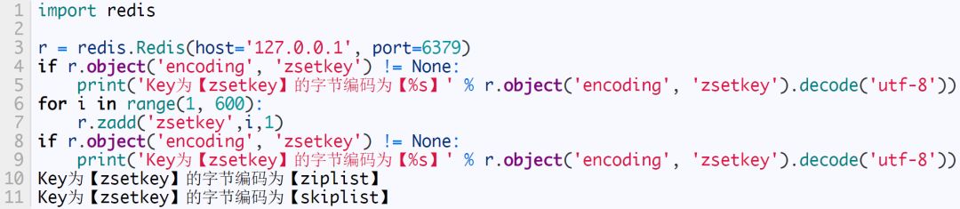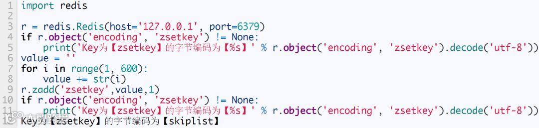 当元素个数超过 128 时,内部编码为 skiplist。下面我们将采用 python 动态创建128个元素,下面为源码: