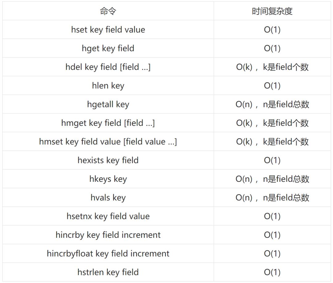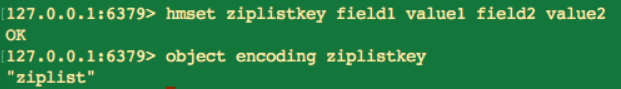 当 field 个数比较少并且 value 也不是很大时候 Redis 哈希类型的内部编码为 ziplist: