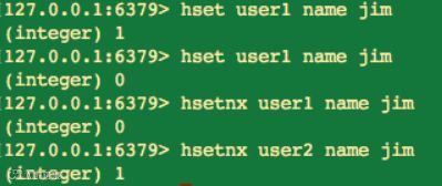 我们看上图执行的命令知道,hset 命令也是有返回值的。如果 hset 命令设置成功,则返回 1,否则返回 0。除此之外 Redis 也为哈希类型提供了 hsetnx 命令。在前文对字符串的介绍中,我们知道 nx 命令只有当 key 不存在的时候,才能设置成功,同样的,hsetnx 命令在 field 不存在的时候,才能设置成功。