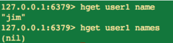 我们看 hget 命令和 get 有很大的不同,get 命令在获取的时候,只要写一个名字就可以了,而 hget 命令则要写两个名字,第一个名字是 key,第二个名字是 field。当然 key 或者 field 不存在时,返回的结果都是 nil。