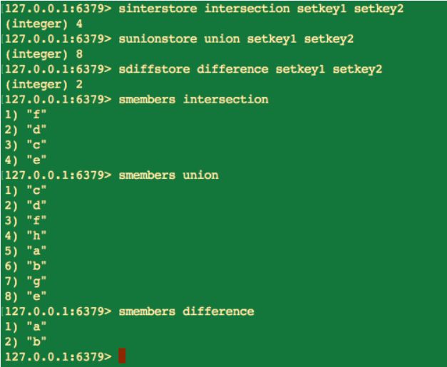 为什么 Redis 要提供 sinterstore、sunionstore、sdiffstore 命令来将集合的交集、并集、差集的结果保存起来呢?这是因为 Redis 在进行上述比较时,会比较耗费时间,所以为了提高性能可以将交集、并集、差集的结果提前保存起来,这样在需要使用时,可以直接通过 smembers 命令获取。