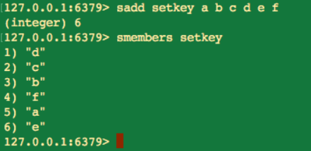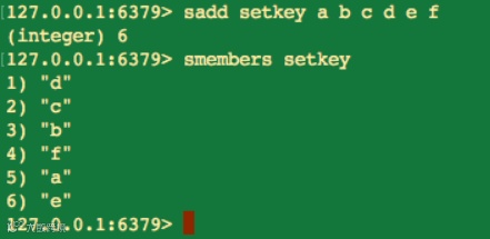 smembers 命令虽然能获取当前 set 中所有的元素,但返回元素的顺序与 sadd 添加元素的顺序不一定相同,这也就是前面提到过的保存在 set 中的元素是无序的。