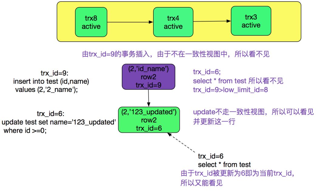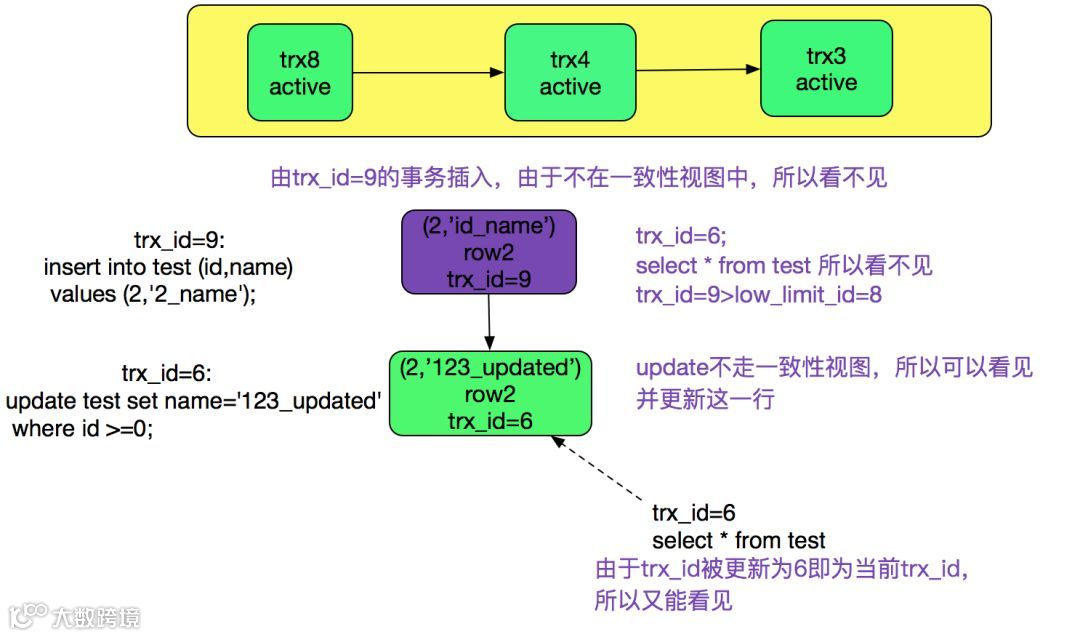 如果理解了update不走一致性视图(read_view),而select走一致性视图(read_view),就可以很好解释这个现象。 如下图所示:
