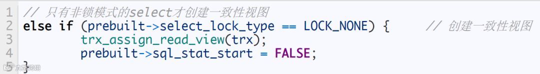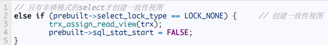 else if (prebuilt->select_lock_type == LOCK_NONE) { // 创建一致性视图