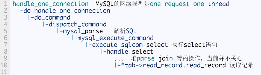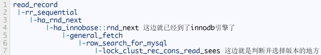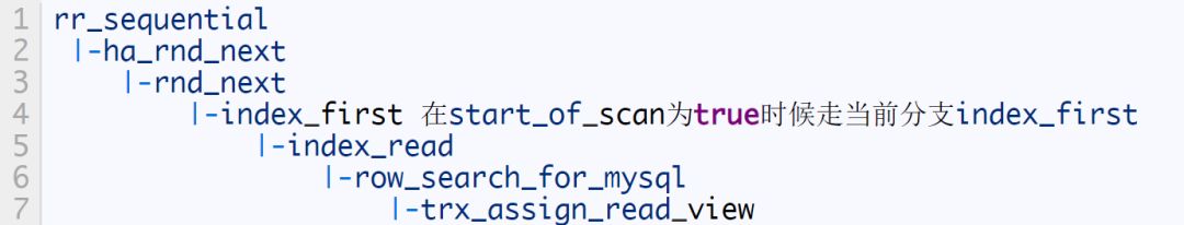 由于mysql默认隔离级别是repeatable_read(RR),所以read_record重载为 rr_sequential(当前我们并不关心select通过index扫描出row之后再通过condition过滤的过程)。继续追踪: