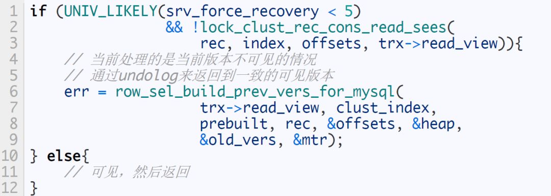 主要是调用了row_ver_build_for_consistent_read方法返回可见版本: