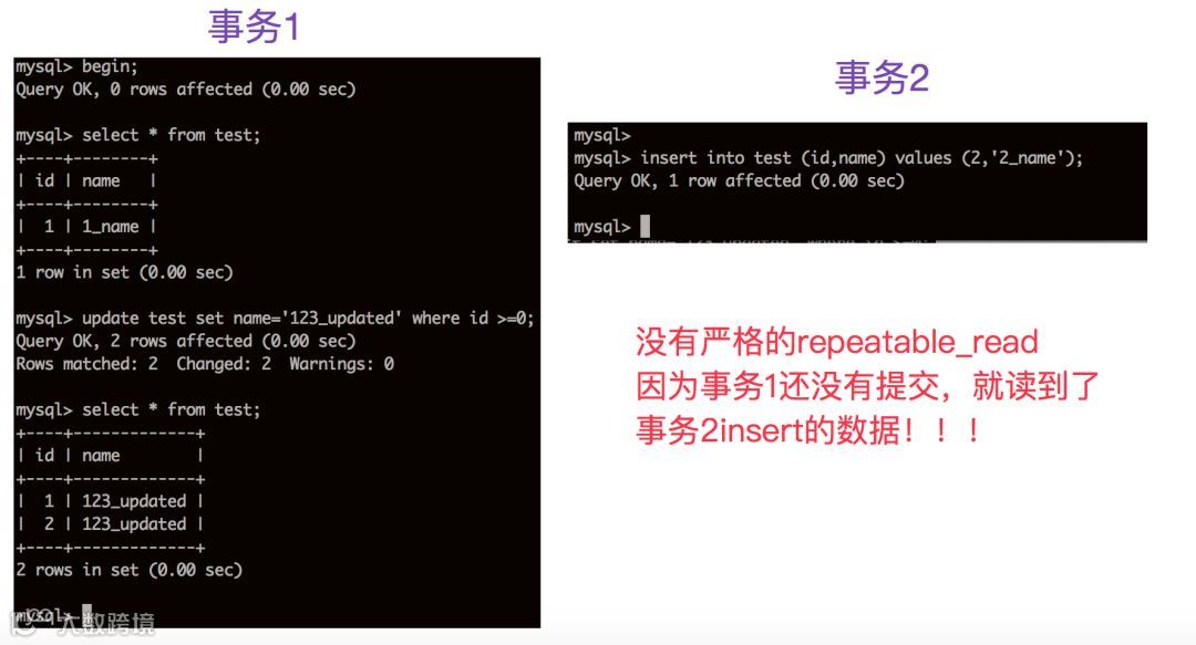 MySQL是通过MVCC和二阶段锁(2PL)来兼顾性能和一致性的,但是由于MySQL仅仅在select时候才创建一致性视图,而在update等加锁操作的时候并不做如此操作,所以就会产生一些诡异的现象。如下图所示: