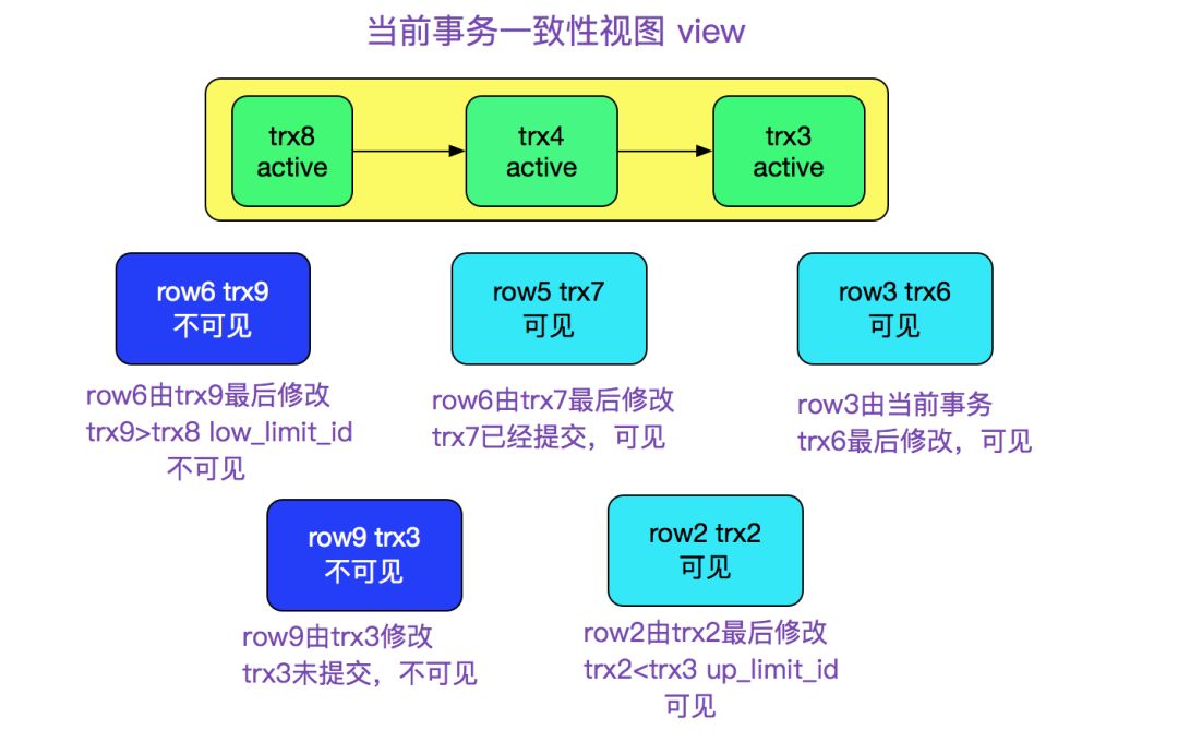 // 通过参数(一致性快照视图和事务id)决定看到的行快照