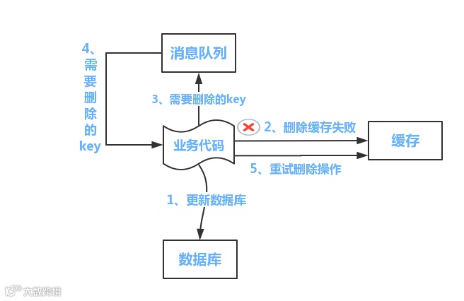 有的,这也是缓存更新策略(2)和缓存更新策略(3)都存在的一个问题,如果删缓存失败了怎么办,那不是会有不一致的情况出现么。比如一个写数据请求,然后写入数据库了,删缓存失败了,这会就出现不一致的情况了。这也是缓存更新策略(2)里留下的最后一个疑问。