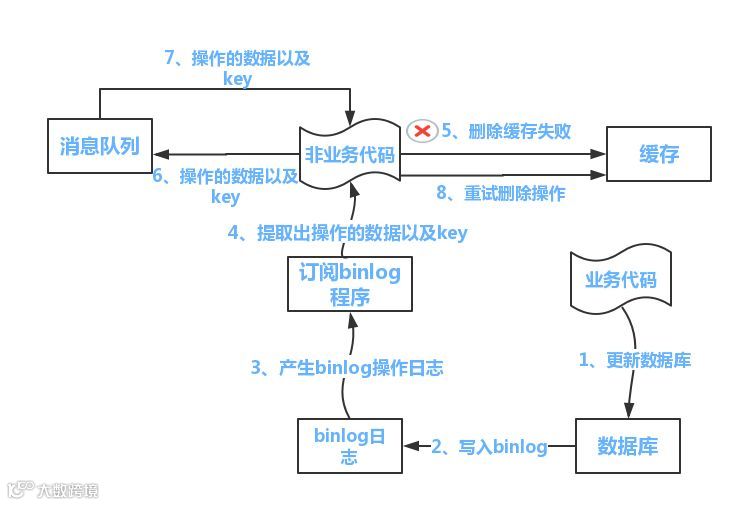 ok,这也就是说。如果第二次删除缓存失败,会再次出现缓存和数据库不一致的问题。