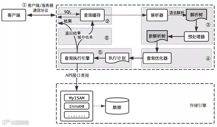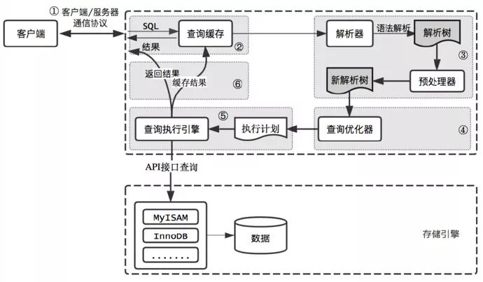 服务器首先检查查询缓存,如果命中缓存,则立刻返回存储在缓存中的结果。否则进入下一阶段