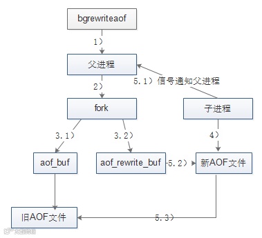 3.2) 由于fork操作使用写时复制技术,子进程只能共享fork操作时的内存数据。由于父进程依然在响应命令,因此Redis使用AOF重写缓冲区(图中的aof_rewrite_buf)保存这部分数据,防止新AOF文件生成期间丢失这部分数据。也就是说,bgrewriteaof执行期间,Redis的写命令同时追加到aof_buf和aof_rewirte_buf两个缓冲区。