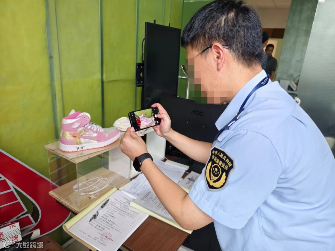 执法人员现场查获涉案“耐克”品牌球鞋