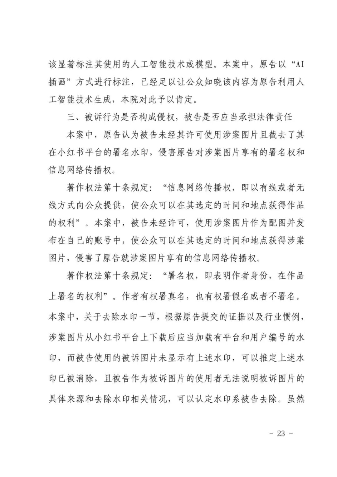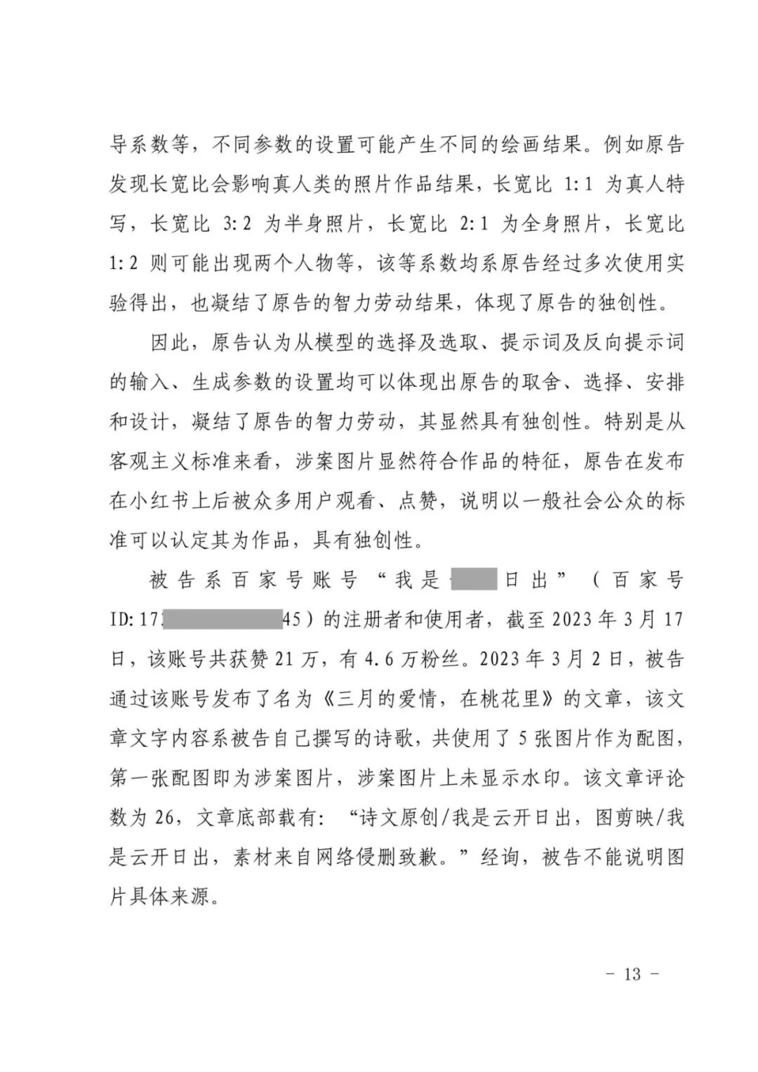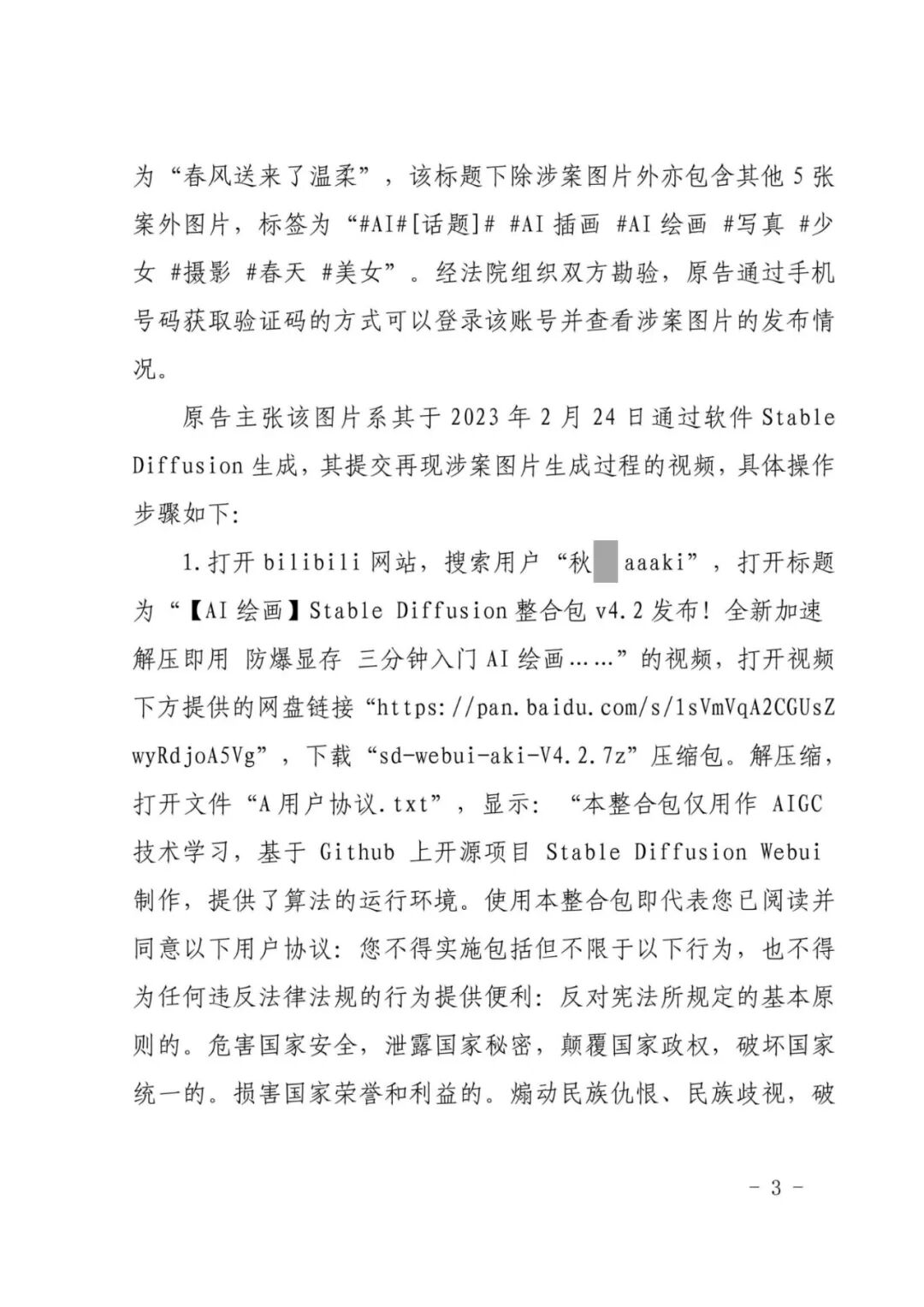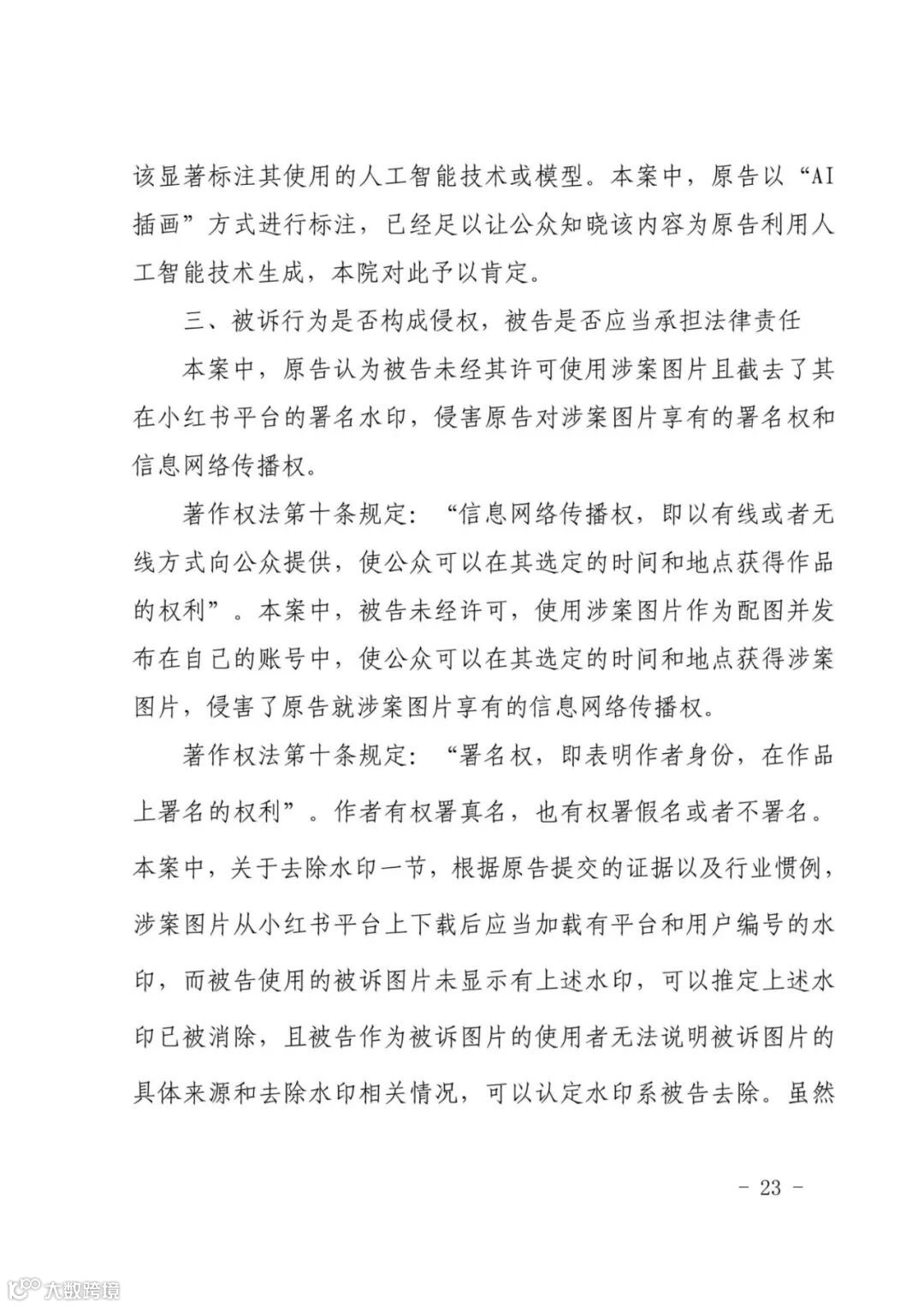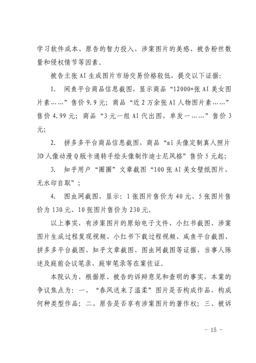 尤其需注意的是,从案件查明事实看,目前网上对AI生成的图片是明确以“AI图片”标注并明码标价的,这说明对于AIGC不同于传统自然人的创作,行业的认知是清晰的。进一步,当图片可以利用AI大模型大量呈现时,人类还有没有必要延续传统绘画技艺的长期学习和训练,还是就此灭绝,这是非常值得思考和追问的。传统美术作品的创作,需要自然人对传统绘画技艺的长期学习和训练,在生成式人工智能大模型将每时每刻“吐出”巨量甚至不计其数的AI图片时,传统自然人直接创作的美术作品应当更为稀缺和昂贵才具有合理性,因此AIGC将随着技术的迭代变得更为廉价。鉴于此,著作权法是否还是适合的法律调整工具需要审慎讨论。也许将传统意义上的人类创作与AIGC加以分割,让“凯撒的归凯撒,上帝的归上帝”更为合理,即传统的自然人创作仍归于著作法保护,如果AIGC需要保护的话,则可以考虑另行制定相关数字产品的专门法律。