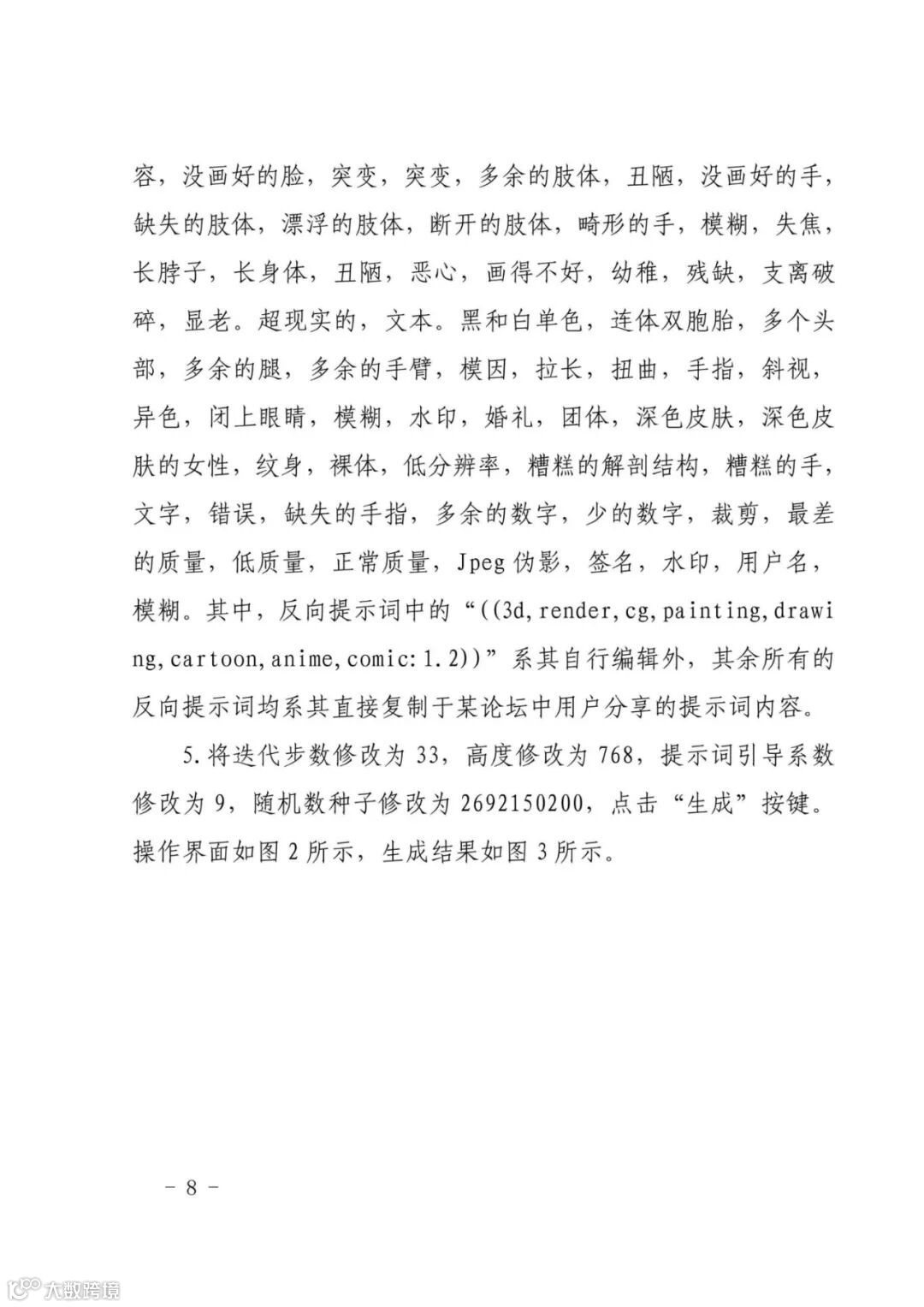 美国版权局发布的《含人工智能生成内容的作品登记指南》提出:“当人工智能技术仅从一个人那里收到了一条指令,并作为回应生成了复杂的文字、视听或音乐成果,则‘传统的创作因素’是由技术而不是由人类用户所决定和执行的。......根据本局对现有生成式人工智能的理解,用户对系统如何阐释指令和生成内容并未运用最终的创造性控制力。......是机器决定了如何在输出结果中执行这些指令。......当人工智能技术决定了其输出结果的表达性因素时,由此产生的内容并不是人类创作的结果。因此该材料并不受版权保护,必须在申请登记时声明排除(出登记范围)。”在“《太空歌舞院》作品登记案”中,人工智能绘图程序通过至少624次提示词的输入才形成了名为《太空歌舞院》的一幅画,该画获得艺术大奖,但美国版权局拒绝了将此画作为作品登记的申请,其根本原因在于用户不能通过输入提示词而“实际形成”画面,缺乏对画面的“最终创造性控制”。