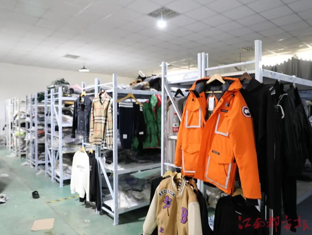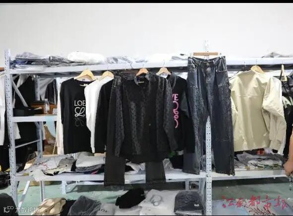 据该局食药环大队大队长卢国峰介绍,今年5月,该局接群众举报,称在某平台网店疑似销售大量假冒名牌服装。接警后,该局打假专案组调查发现,该网店老板王某某大量进购,假冒注册商标的大牌服装,并通过某平台进行直播销售。在锁定犯罪利益链条等相关证据后,专案组迅速出击,于本月中旬远赴江苏省盐城市,对售假窝点展开侦查。9月21日,办案民警果断收网,将正在进行售假活动的黄某某等人当场抓获,并在现场查获大量假冒品牌服饰。