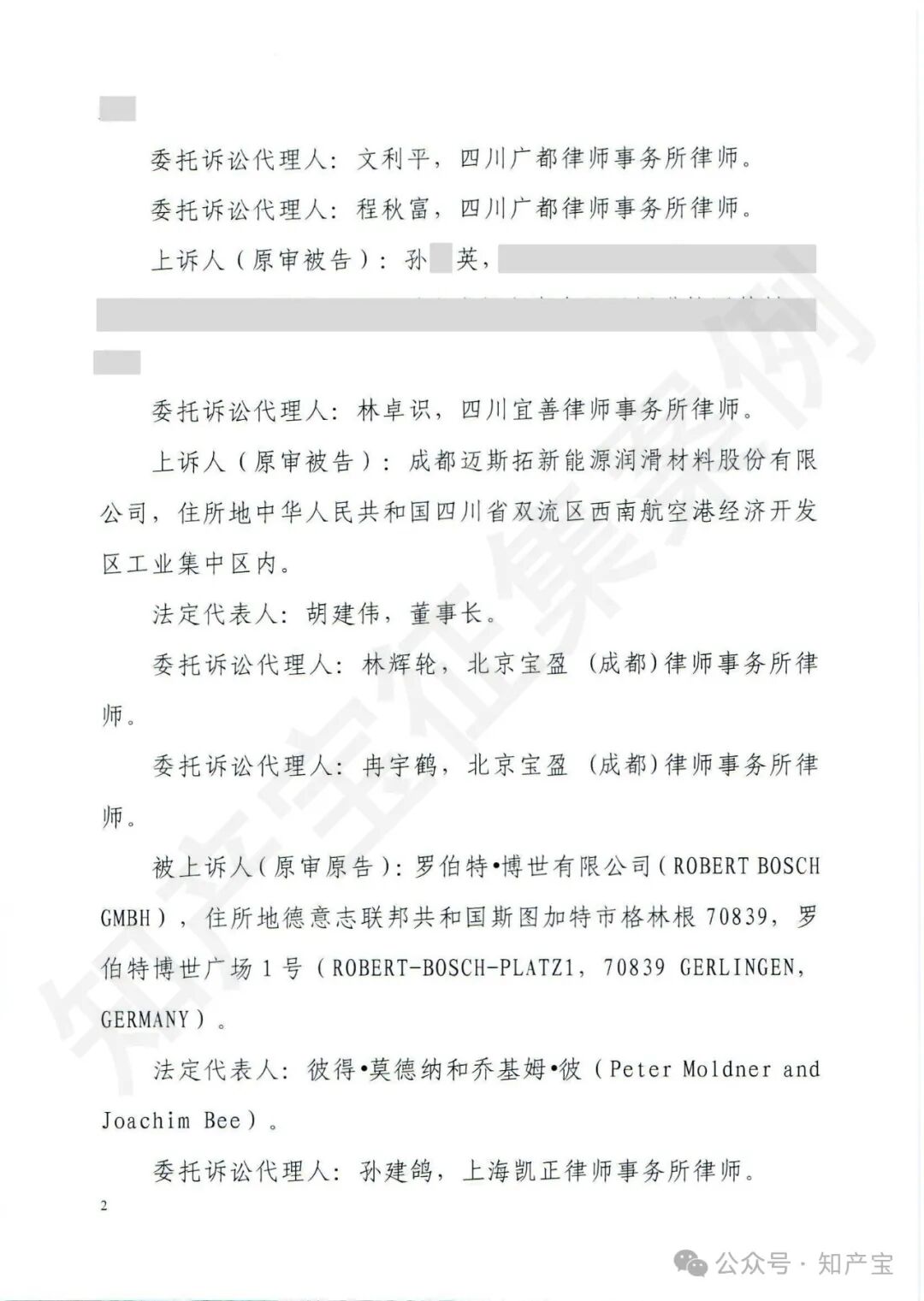 被上诉人(原审原告):罗伯特·博世有限公司(ROBERTBOSCHGMBH),住所地德意志联邦共和国斯图加特市格林根70839,罗伯特博世广场1号(ROBERT-BOSCH-PLATZ1,70839GERLINGEN,GERMANY)。 法定代表人:彼得·莫德纳和乔基姆·彼(PeterMoldnerandJoachimBee)。 委托诉讼代理人:孙建鸽,上海凯正律师事务所律师。 委托诉讼代理人:孙锐锋,上海凯正律师事务所律师。 被上诉人(原审原告):博世(中国)投资有限公司,住所地中华人民共和国上海市长宁区福泉北路333号1幢6楼。 法定代表人:YudongChen,总裁。 委托诉讼代理人:孙建鸽,上海凯正律师事务所律师。 委托诉讼代理人:孙锐锋,上海凯正律师事务所律师。 |