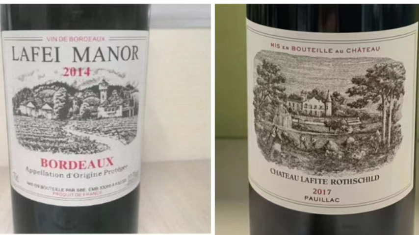 拉菲庄园葡萄酒(左)与正品拉菲 (右)