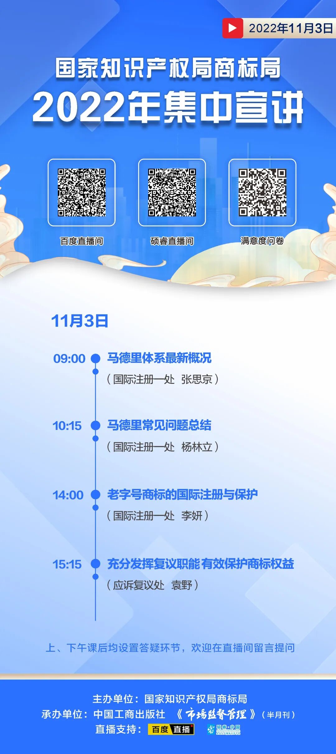 国家知识产权局商标局2022年集中宣讲“马德里国际注册及商标行政复议”课程来啦!