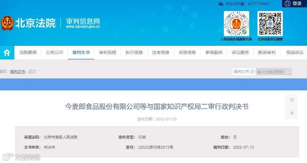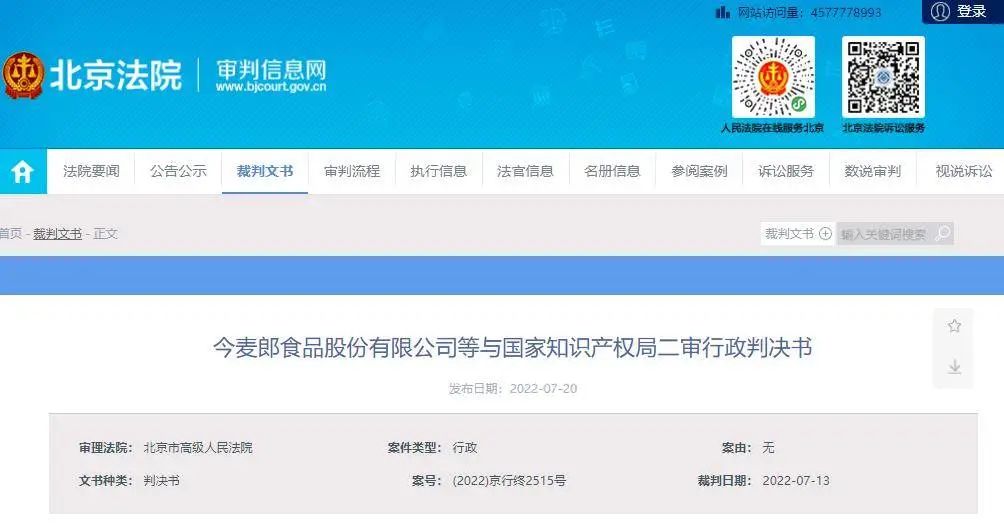 近日,今麦郎食品股份有限公司(简称“今麦郎”)第17796725号“1袋半”商标一审被判无效,二审维持原判。 二审判决书中提到,“1袋半”商标使用在“方便面”等商品上,公众基于一般认知,会将“一袋半”理解为商品重量的直接描述,缺乏应有的显著特征,不具备可注册性。 根据今麦郎补充的证据,法院并未认可商标在实际使用中获得了显著特征。