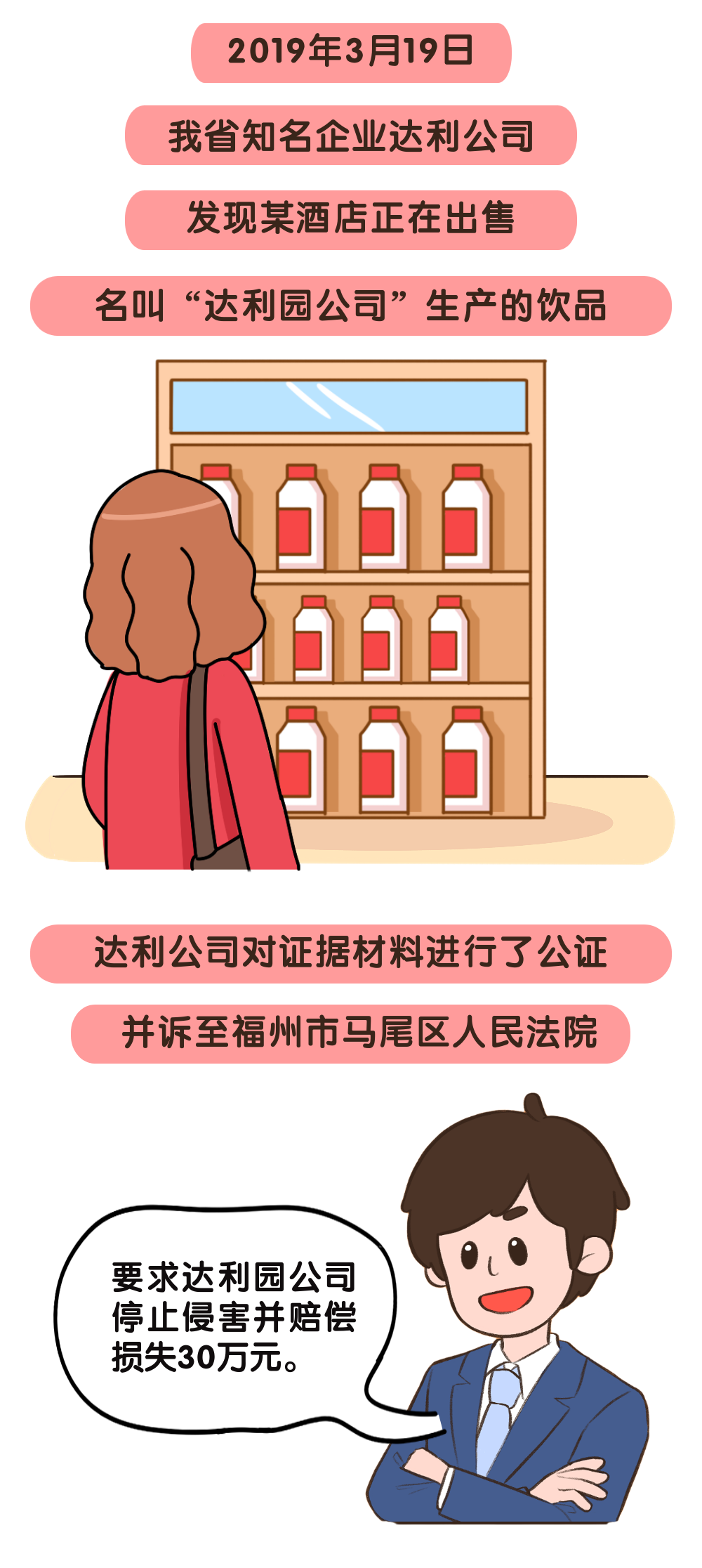 根据《中华人民共和国反不正当竞争法》第十七条和《最高人民法院关于审理注册商标、企业名称与在先权利冲突的民事纠纷案件若干问题的规定》中第四条规定,马尾法院判决:达利园公司应停止在其生产、销售的饮品包装袋上使用 “福州达利园”字样,停止在企业名称中使用含有“达利园”的字号,停止在饮品的内外包装、展会上使用带有“达利园”字样的企业名称,并赔偿达利公司经济损失和合理费用20万元。