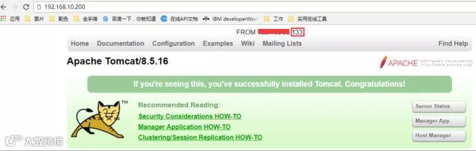 (2)分别启动两个服务器中的tomcat、nginx、keepalived,访问虚拟ip:192.168.10.200,可以查看到访问的是主keepalived服务器的tomcat