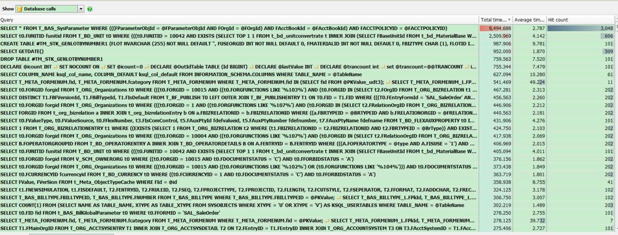 针对这个问题,我们跟踪到的调用堆栈和SQL耗时结果如下图: