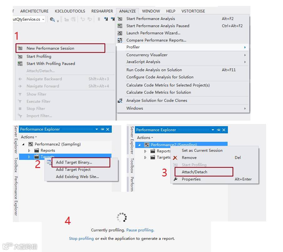 代码问题定位,优先推荐使用VS自带的Performance Analysis,其次是RedGate的性能分析套件.NET Developer Bundle;然后还有Jet Brains的dotTrace — .NET performance profiler,dotMemory– .NET memory profiler;再然后就是反人类的Windbg;等等。