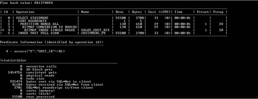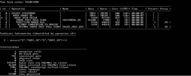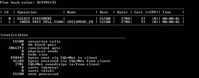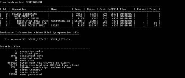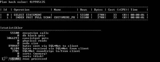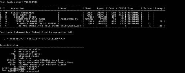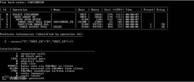 可以看到在两个查询的consistent gets数量之间的差异(当检查缓冲区缓存读到的块数据时)是巨大的。使用两种不同方法编写的查询在运行时导致不同时间。这种差别可以用性能来解释。