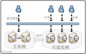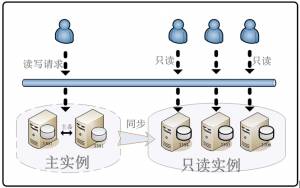 只读实例是目前 RDS 用户实现数据读写分离的一种常见架构,用户只需要将业务中的读请求分担到只读节点上,就可以缓解主库查询压力,同时也可以把一些 OLAP 的分析查询放到另外的只读节点上,减小复杂统计查询对主库的冲击,RDS只读节点架构图如下:
