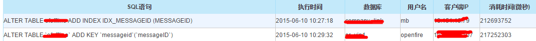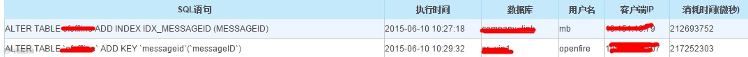 查看主库这这一段时间是否存在DDL,发现主库在添加索引: