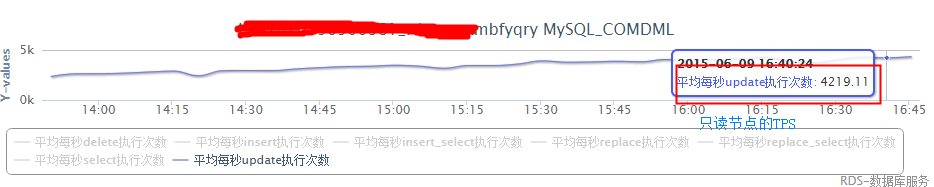 这一类的延迟也是非常常见的延迟,由于只读节点与主库的同步采用的是单线程同步,而主库的压力是并发多线程写入,这样势必会导致只读节点的数据延迟,可以通过观察只读节点的TPS与主节点的TPS性能数据来完成判断: